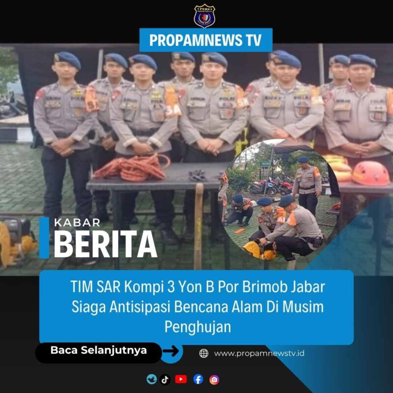 TIM SAR Kompi 3 Yon B Por Brimob Jabar Siaga Antisipasi Bencana Alam Di Musim Penghujan