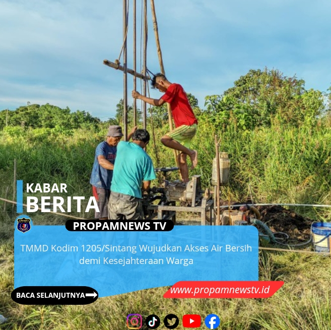 SINTANG – // PropamNewsTv.id – Pembangunan sumur bor oleh Kodim 1205/Sintang dalam program TNI Manunggal Membangun Desa (TMMD) menjadi langkah konkret dalam meningkatkan kesejahteraan masyarakat di Kabupaten Sintang.