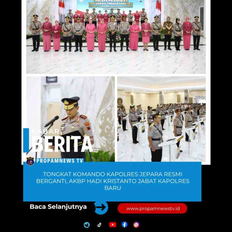 Jepara //propamnewstv.id – Polres Jepara | Tongkat komando Kapolres Jepara resmi berpindah tangan. Jabatan Kapolres Jepara kini diemban oleh AKBP Hadi Kristanto menggantikan AKBP Erick Budi Santoso.