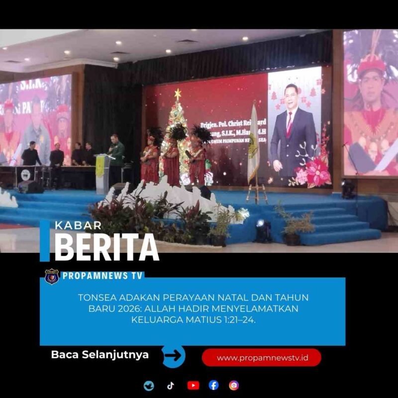 Jakarta //propamnewstv.id — Keluarga besar Tonsea di perantauan menggelar Perayaan Natal dan Tahun Baru 2026 dengan penuh khidmat dan sukacita di Auditorium Mutiara STIK-PTIK, Jalan Tirtayasa, Jakarta Selatan, Sabtu (24/1/2026).