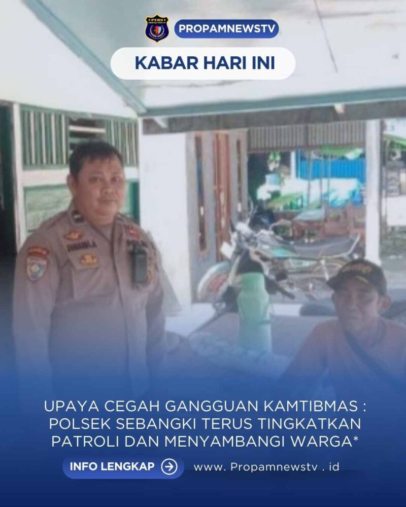 SEBANGKI LANDAK // PROPAMNEWSTV.ID – Kepedulian terhadap keamanan dan kenyamanan warga kembali ditunjukkan aparat kepolisian. Aipda Junaidi Atos “anggota Polsek Sebangki turun langsung menyambangi warga di wilayah hukumnya untuk memberikan himbauan kamtibmas sekaligus mempererat hubungan polisi dan masyarakat, ” Sabtu (29/11/2025)