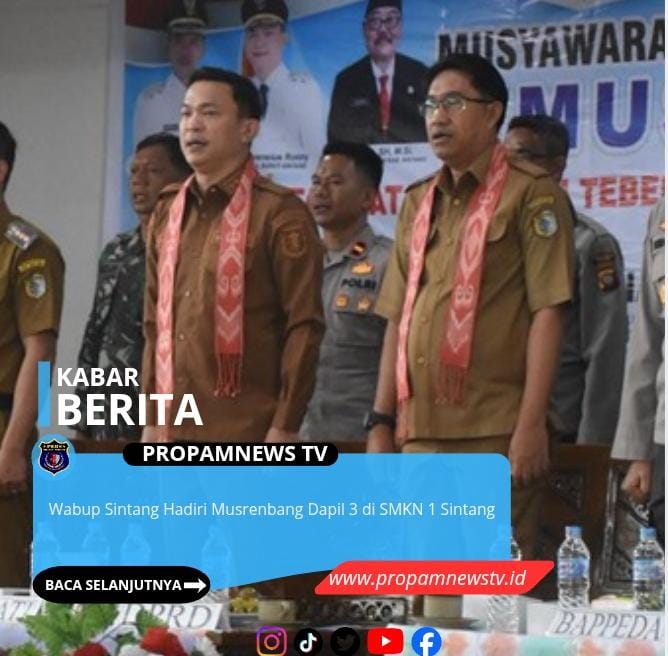 Sintang, // PropamNewstv.id – Wakil Bupati Sintang Florensius Ronny menghadiri pelaksanaan Musyawarah Rencana Pembangunan (Musrenbang) untuk Daerah Pemilihan (Dapil) 3 yang mencakup Kecamatan Kelam Permai, Sungai Tebelian dan Dedai di Aula SMK Negeri 1 Sintang pada Selasa, 10 Februari 2026.