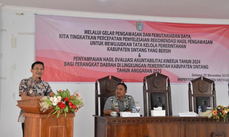 SINTANG//propamnewstv.id – Wakil Bupati Sintang Florensius Ronny membuka kegiatan Gelar Pengawasan dan Pemutakhiran Data Kabupaten Sintang Tahun 2025 atas Laporan Hasil Pemeriksaan (LHP) Inspektorat Kabupaten Sintang di Aula Inspektorat Kabupaten Sintang pada Kamis, 27 November 2025.