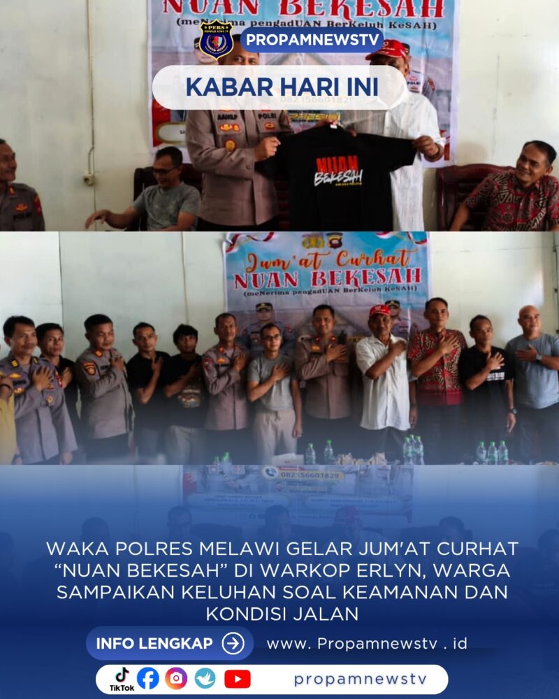 KALBAR // propamnewstv.id – Kegiatan Jum’at Curhat Nuan Bekesah kembali digelar Polres Melawi sebagai sarana menampung aspirasi dan keluhan masyarakat terkait situasi kamtibmas. Pada Jumat (5/12/2025), Waka Polres Melawi Kompol Aang Permana, S.I.P., S.H., M.A.P., memimpin langsung kegiatan yang berlangsung di Warkop Erlyn, Desa Pemuar, Kecamatan Belimbing.