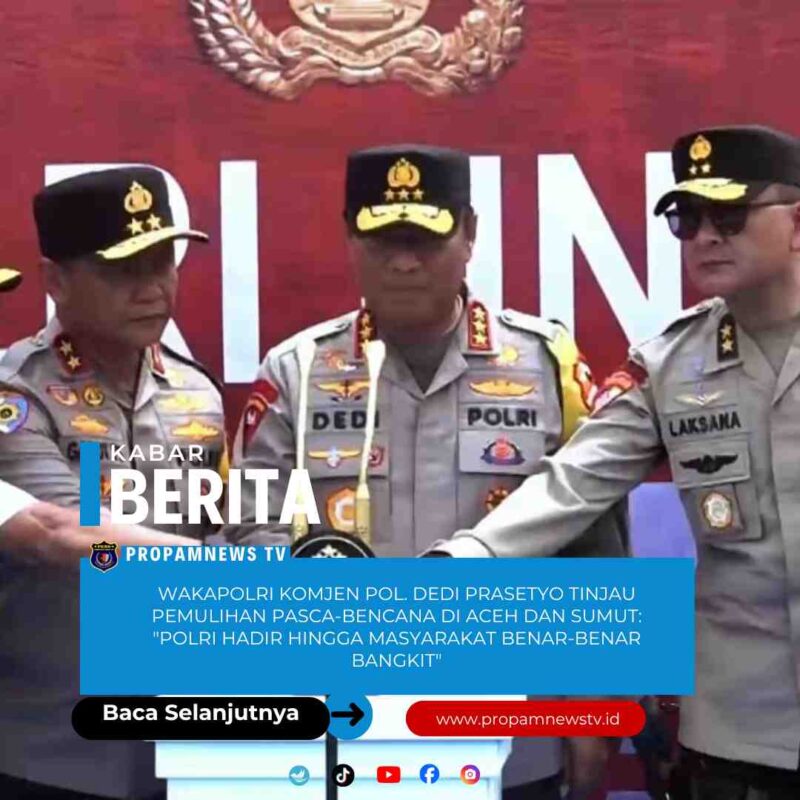 Sumatra Utara // PropamNewstv – Wakil Kepala Kepolisian Negara Republik Indonesia (Wakapolri) Komjen Pol. Dedi Prasetyo terus mengawal percepatan pemulihan pasca-banjir dan tanah longsor di wilayah Sumatera Utara dan Aceh. Dalam peninjauan terbaru pada Jumat (3/1/2025), Wakapolri menekankan pentingnya normalisasi fasilitas umum, khususnya tempat ibadah, serta pemenuhan kebutuhan dasar masyarakat di pelosok.