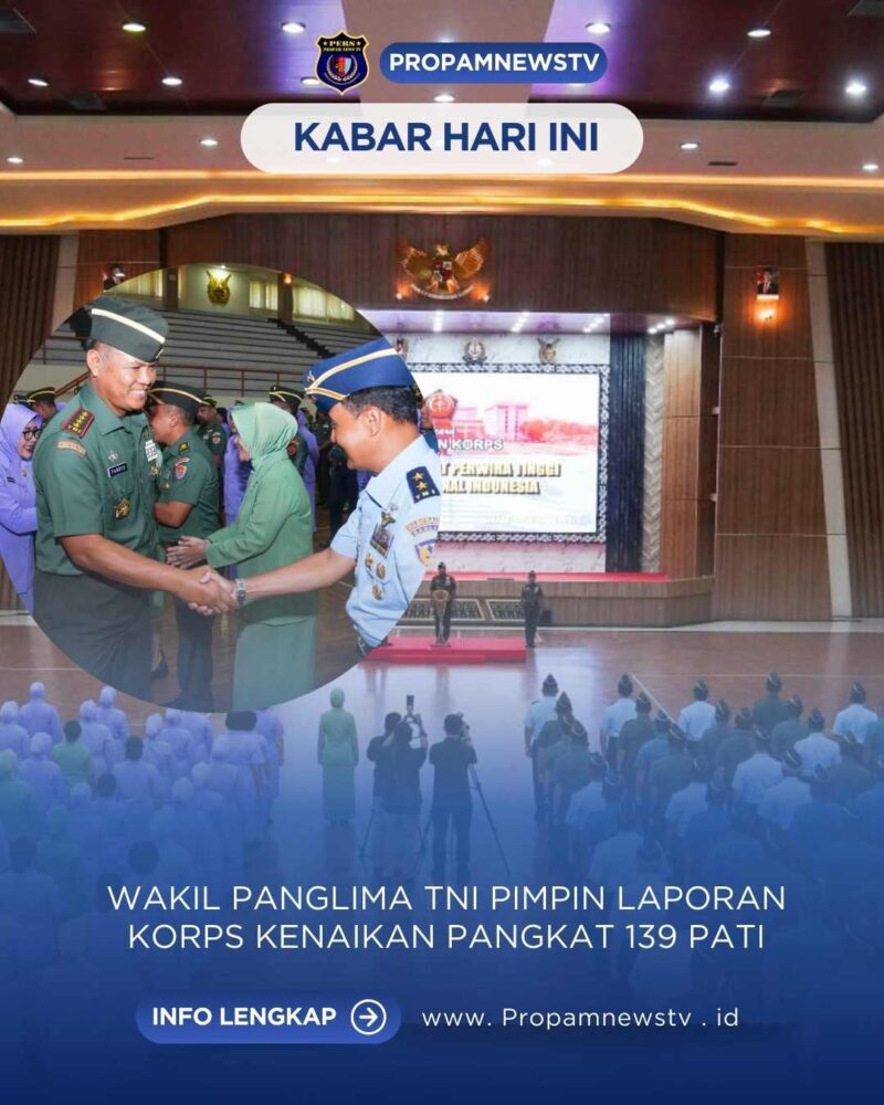 Jakarta Timur // propamnewstv.id — (Puspen TNI). Wakil Panglima TNI Jenderal TNI Tandyo Budi R., mewakili Panglima TNI Jenderal TNI Agus Subiyanto, memimpin Laporan Korps Kenaikan Pangkat bagi 139 Perwira Tinggi (Pati) TNI di GOR A. Yani, Mabes TNI Cilangkap, Jakarta Timur, Senin (1/12/2025).