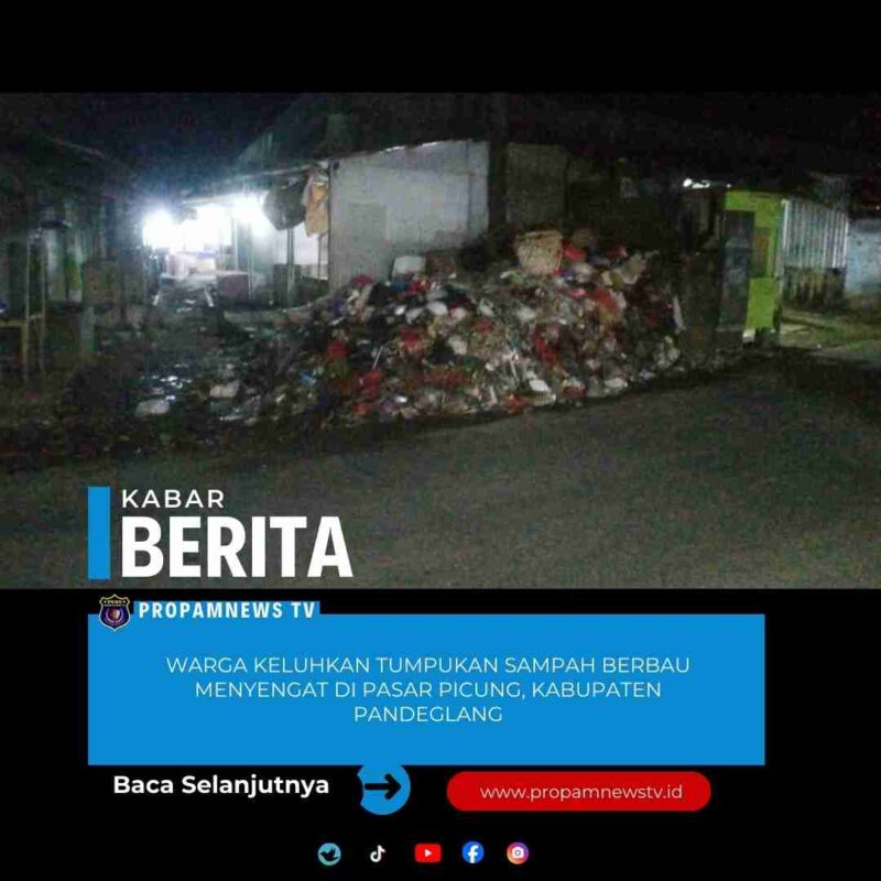 Pandeglang, // PropamNewstv.id – Warga dan pedagang di sekitar Pasar Picung, Kabupaten Pandeglang, mengeluhkan adanya tumpukan sampah yang menimbulkan bau menyengat dan mengganggu kenyamanan lingkungan pasar.