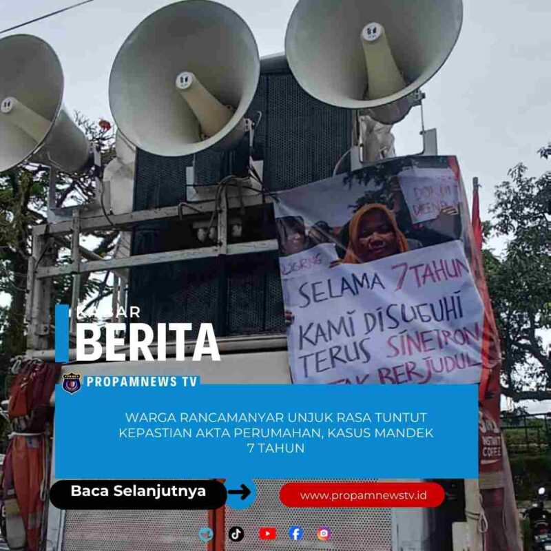 Bandung, // PropamNewstv.id – Puluhan warga Perumahan Kharisma, Desa Rancamanyar, Kecamatan Baleendah, Kabupaten Bandung, menggelar unjuk rasa (unras) di Kompleks Perkantoran Pemerintah Kabupaten Bandung, Selasa (14/1/2026).