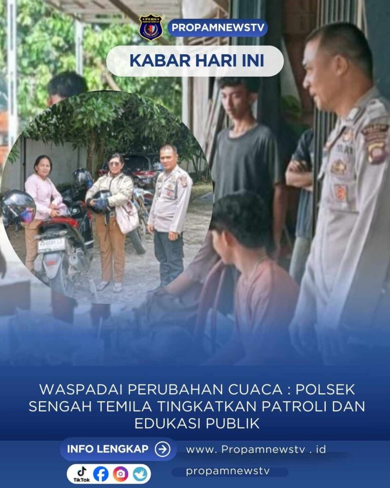 SENGAH TEMILA, LANDAK // propamnewstv.id – Personel Polsek Sengah Temila kembali melaksanakan patroli siang di wilayah hukum Kecamatan Sengah Temila. Dalam kegiatan tersebut petugas menyampaikan himbauan kepada masyarakat agar tetap berhati-hati saat beraktivitas maupun berkendara di tengah kondisi cuaca yang tidak menentu. Selasa, ( 2/12/2025 )