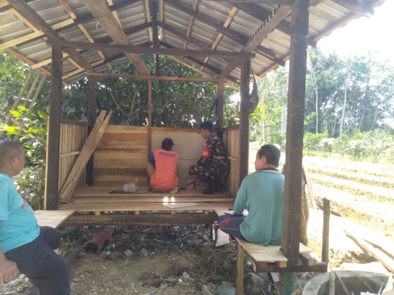 Wujud Kemanunggalan TNI dan Rakyat, Babinsa Bersama Warga Dirikan Pos Kamling di Aluan Mati