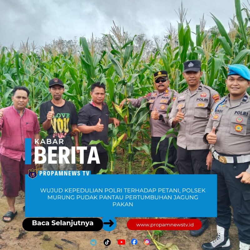 Polres Tabalong // PropamNewstv.id – Polsek Murung Pudak melaksanakan kegiatan pengecekan pertumbuhan lahan jagung pakan yang berada di Kelompok Tani (Poktan) Mekarsari, Desa Kasiau RT 7, Kecamatan Murung Pudak, Kabupaten Tabalong, Senin (05/01/2026) pagi. Kegiatan tersebut dipimpin langsung oleh Kapolsek Murung Pudak AKP Sunaryo bersama personel Polsek Murung Pudak.