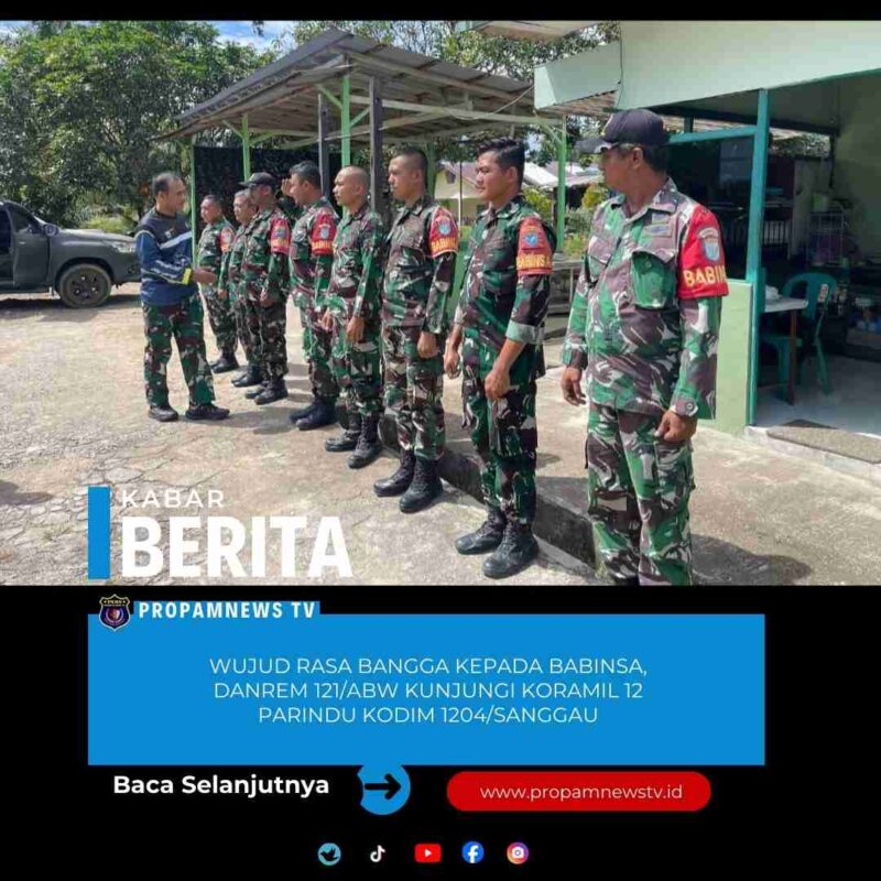 SANGGAU, // PropamNewstv.id – Sebagai wujud apresiasi dan rasa bangga terhadap dedikasi para Babinsa di jajaran Korem 121/Abw, Komandan Korem 121/Abw Brigjen TNI Purnomosidi, S.I.P., M.A.P., M.Han., melakukan kunjungan kerja ke Koramil 1204-12/Parindu, Kabupaten Sanggau, Kalimantan Barat, pada Sabtu (24/01/2026).