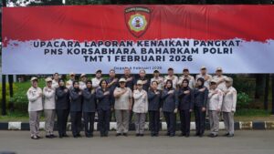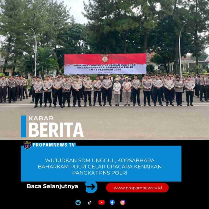 Depok, // PropamNewstv.id – Korps Sabhara (Korsabhara) Baharkam Polri melaksanakan upacara kenaikan pangkat bagi Pegawai Negeri Sipil (PNS) Polri Terhitung Mulai Tanggal (TMT) 1 Februari 2026. Upacara yang berlangsung khidmat ini digelar di Lapangan Apel Korsabhara Baharkam Polri pada Kamis pagi (5/2/2026).