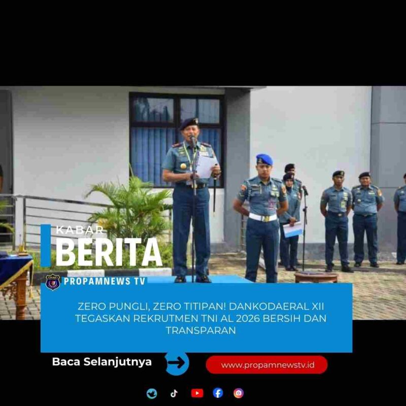PONTIANAK, // PropamNewstv.id – Komandan Komando Daerah Angkatan Laut (Dankodaeral) XII, Laksamana Muda TNI Sawa, S.E., M.M., CIQaR., menegaskan komitmen kuat TNI Angkatan Laut dalam mewujudkan proses rekrutmen prajurit yang bersih, transparan, akuntabel, dan humanis pada Tahun Anggaran 2026.