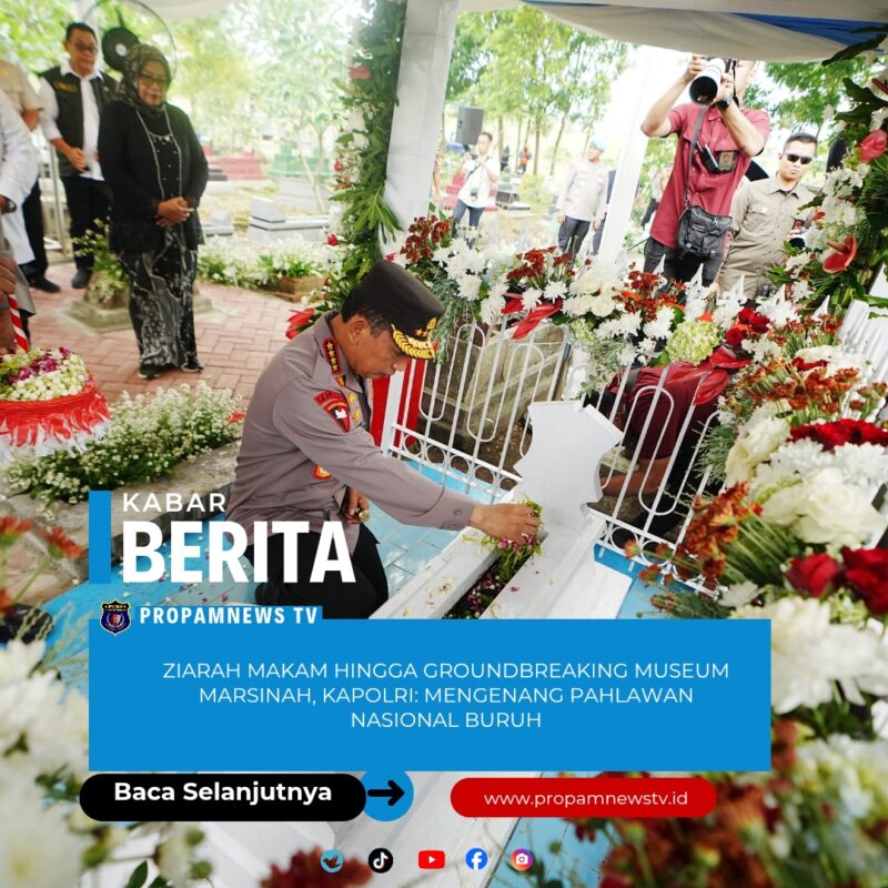 Jatim //propamnewstv.id – Kapolri Jenderal Listyo Sigit Prabowo berziarah ke makam Pahlawan Nasional Marsinah di Kecamatan Sukamoro, Kabupaten Nganjuk, Jawa Timur (Jatim). Ia juga melihat rumah masa kecil dari tokoh buruh tersebut.